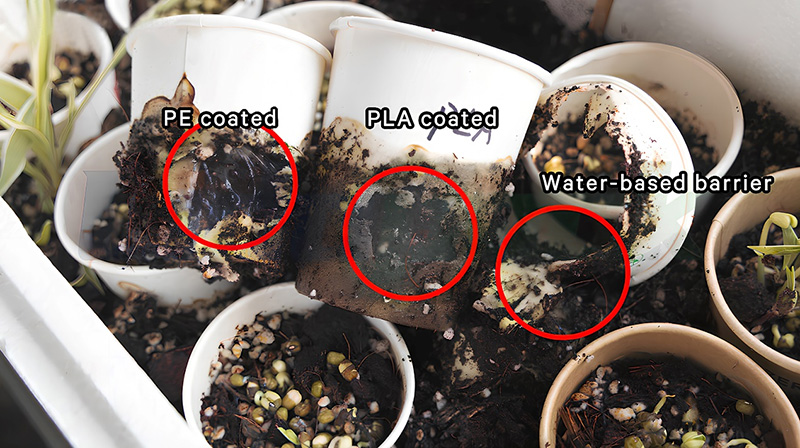 245 دن کے بعد ، پانی کے قطار میں لگے ہوئے کاغذی کپ کو مکمل طور پر ختم کردیا گیا ، پی ایل اے کے ریشوں کو ہراساں کیا گیا ، پی ایل اے کی فلم نے بہت کہا ، اور پیئ کی فلم بنیادی طور پر برقرار تھی۔